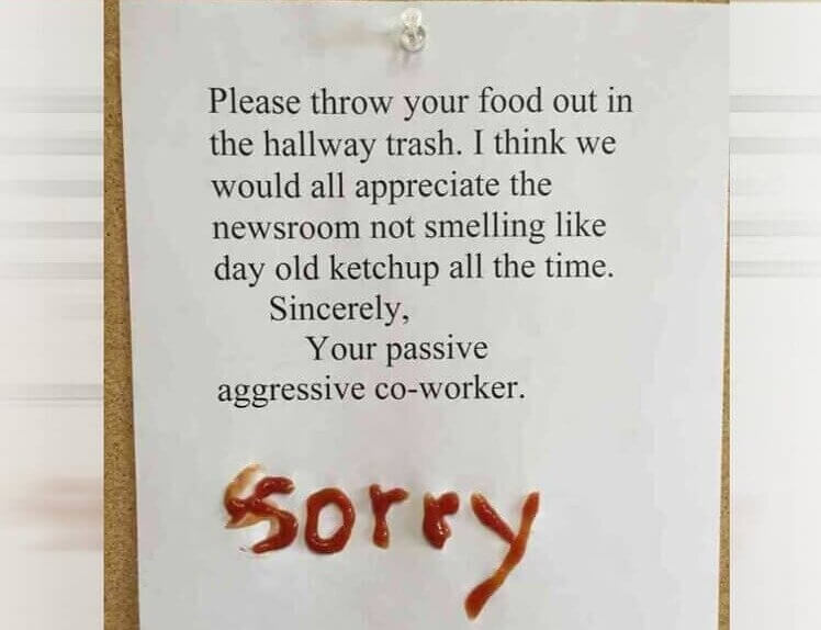 Passive-aggressive notes are everywhere in corporate office life. Usually someone leaves a message aimed at one specific coworker but pretends it’s for everyone. You know exactly who it’s about.