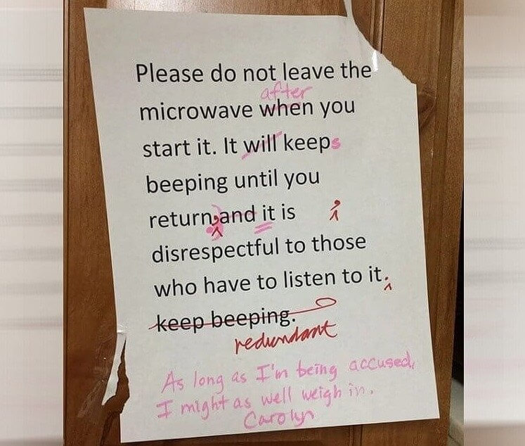 Carolyn saw a note clearly meant for her. Instead of getting mad, she grabbed a pen and corrected the grammar on it. Honestly, that kind of confidence belongs in every modern workplace culture.