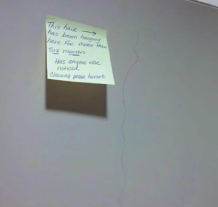 But in this office, a random hair sat in the same spot for six months. Instead of reporting it, someone left a passive-aggressive note asking if anyone else had noticed it. Safe to say… they definitely had.
