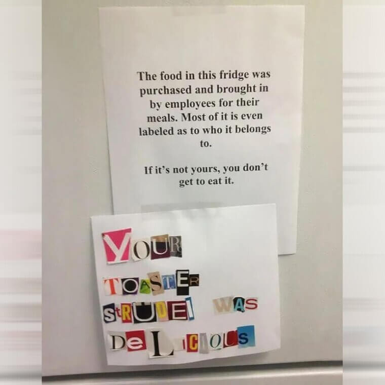 One employee labeled their tuna sandwich… and someone still ate it. The thief left a funny note saying, “Strange new trend in the office. People putting names on food. Today I had a tuna sandwich named Kevin.” Not great for Kevin, but the office humor was strong.