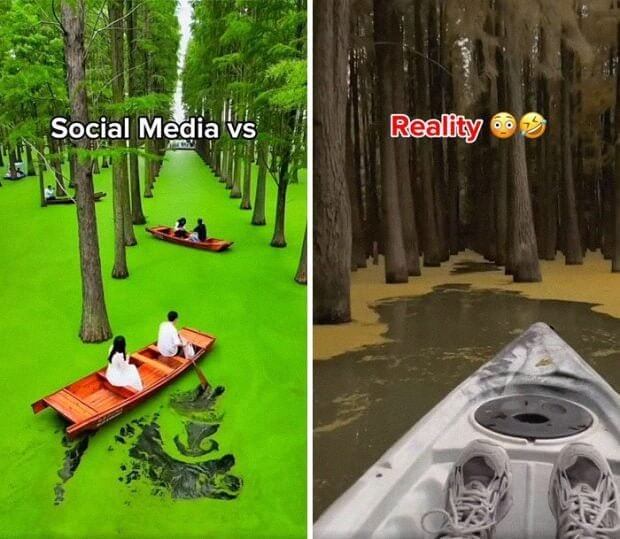 In reality, the water can look brown and kinda dirty, especially after rain. Add floating trash and even safety concerns like wildlife nearby… not exactly the picture-perfect travel experience you saw online.